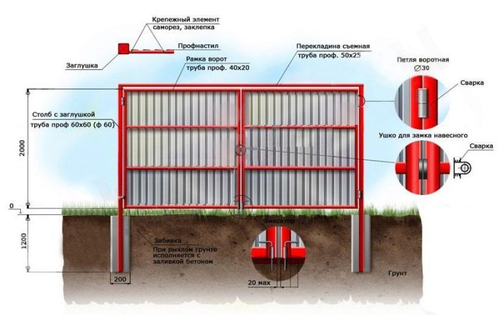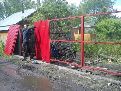 بغض النظر عن التصميم المستخدم ، يجب التحقق من تثبيت الأعمدة والشرائط المعلقة باستخدام مستوى. تأكد من ترك فجوات فنية في فجوات اللوحات وفوق الأرض ، سيسمح لك ذلك بفتح البوابة بحرية في حالة حدوث تشويه أو تحولات (انهيار) للتربة أو تساقط الثلوج.
