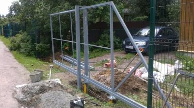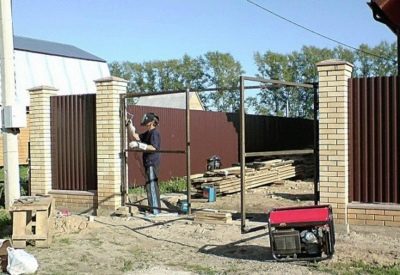 عند تثبيت بوابات التأرجح ، يجب ربط كل من الستائر بالأسلاك ، ثم لن تنزلق عند تثبيت قوالب الفجوة السفلية. عند تثبيت بوابات معدنية منزلقة ، من الأفضل اختيار إصدار وحدة التحكم بالميكانيكا ، لأن مثل هذا الهيكل غير محدود في الارتفاع ويعمل بصمت. يمكنك بدء التثبيت حتى بدون فتحة جاهزة, لكن من الضروري توفير سياج مباشر من الجانب الافتتاحي.