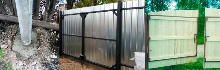 ومن ثم يتبع ذلك يجب ألا تبحث عن خيار عالمي ، يجب أن يتم اختياره لحل مشكلة معينة. من الضروري أيضًا التأكد من أن دعامات البوابة والسياج تتوافق من الناحية الفنية والتقنية. في التربة الرملية أو الناعمة أو المغمورة بالمياه بشكل دوري ، يجب ربط الحفريات بخندق وإنشاء عتبات مقواة بين العناصر المراد توصيلها..