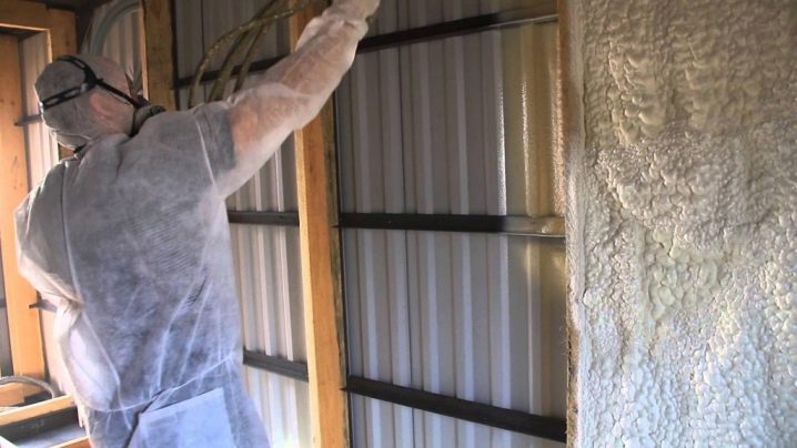 تعتبر رغوة البولي يوريثان السائلة الأكثر ملاءمة للاستخدام ؛ يتم تطبيقها على الأسطح عن طريق الرش. لا يشكل العازل الحراري فجوات أو طبقات. تلعب هذه المادة ، بالإضافة إلى العزل ، دورًا ممتازًا في العزل المائي والضوضاء ، وتحمي الهيكل المعدني جيدًا وتخدم حتى 50 عامًا.