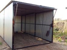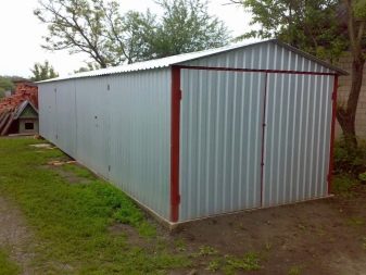 المرآب المصنوع من الكرتون المضلع عبارة عن هيكل مركب من صفائح فولاذية. يمكن أن يكون لهذه المادة ارتفاعات وسمك موجات مختلفة ، لذلك ، اعتمادًا على الحمل المتوقع على الهيكل ، يمكنهم اختيار لوح مموج C18 أو C21. علاوة على ذلك ، كلما زاد ارتفاع موجة الألواح ، كلما كان المبنى أكثر موثوقية. نظرًا لأن وزن الصفيحة الجانبية صغير ، فغالبًا ما يتم إجراء تثبيت مثل هذا المرآب على شريط أو أساس أنبوب.. لتسريع عملية تثبيت الهيكل ، يوصى بشراء مجموعات جاهزة من الأجزاء, التي لن تستغرق أكثر من 3 أيام لتجميعها ، وعادة ما تتكون من إطار وسقف وجدران وبوابات وكورنيش.