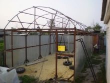 بالنسبة للمادة ، ستحتاج إلى أنابيب معدنية مجلفنة وملامح لتركيب المرآب. نظرًا لأن سوق البناء يبيع ملفات تعريف ذات مقطع عرضي مربع ومستطيل ، فمن الأفضل إعطاء الأفضلية للأول. إنها سهلة التركيب والتجميع بسرعة. يجب أن يكون هيكل المرآب مصنوعًا من الحديد ، لذلك ، من أجل تزويده بقوة جيدة, يوصى بعمل الرفوف الرئيسية للأنابيب بقطر لا يقل عن 100 مم. يمكن وضع مادة ذات مقطع عرضي 60 مم تحت إطار الهيكل.