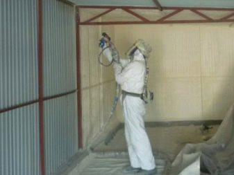 تعتبر رغوة البولي يوريثان السائلة الأكثر ملاءمة للاستخدام ؛ يتم تطبيقها على الأسطح عن طريق الرش. لا يشكل العازل الحراري فجوات أو طبقات. تلعب هذه المادة ، بالإضافة إلى العزل ، دورًا ممتازًا في العزل المائي والضوضاء ، وتحمي الهيكل المعدني جيدًا وتخدم حتى 50 عامًا.