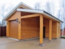 إن تنفيذ مشروع مرآب مع سقيفة موضوعة مباشرة أمام باب المرآب ليس بالأمر غير المألوف بسبب بعض وسائل الراحة. خطة المحاذاة هذه تحمي المساحة الموجودة أمام المرآب من هطول الأمطار. في الشتاء ليست هناك حاجة لتنظيف الثلج. ومع ذلك ، يمكن أن يكون سقف المرآب والمظلة هيكلًا واحدًا..