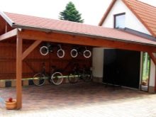 - تحت مثل هذا “الحاجب” لن تخزن العجلات والأشياء الأخرى التي تجد مكانها تقليديًا في المرآب. يمكن حل المشكلة إذا كان المبنى مجاورًا للحظيرة.