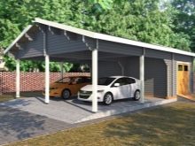 إذا سمحت مساحة الموقع ، فلا شيء يمنعك من بناء مظلة قائمة بذاتها ، والتي ستناسب سيارتين أو أكثر. يمكنك اختيار إصدار مغلق أو مفتوح من الهيكل.