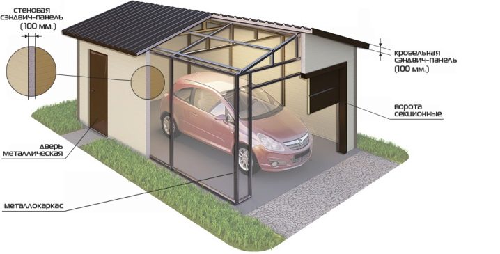 في الآونة الأخيرة ، هناك حاجة إلى الرسومات التفصيلية بدلاً من الطلب ، لأنه في متاجر الأجهزة الكبيرة ، يمكنك العثور على مجموعة جاهزة تمامًا للتجميع الذاتي لمرآب من الألواح العازلة. الفرق في السعر بين الشراء خطوة بخطوة لكل عنصر على حدة والمجموعة الجاهزة ضئيل للغاية ، ولكن يمكنك التأكد من عدم نسيان أي تفاصيل..