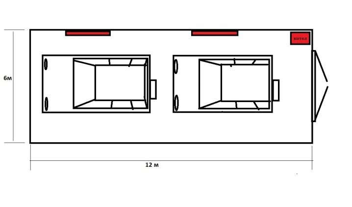 عندما يكون من المستحيل زيادة عرض المرآب ، يتم إنشاء هيكل أقل ملاءمة ولكن اقتصاديًا من حيث المساحة المشغولة ، حيث تقف إحدى السيارات خلف أخرى. نعم ، هذا ليس مريحًا جدًا ، خاصةً إذا كان الشخص الأول الذي يغادر للعمل هو الشخص الذي تكون سيارته مغلقة بعيدًا عن المدخل وتحتاج إلى التفاوض باستمرار. ومع ذلك ، فإن الميزة غير المشكوك فيها للجراج بمساحة 12 × 6 أو 12 × 4 متر على الأقل هي أن كلا السيارتين دائمًا تحت مظلة ودافئة.