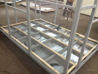 لزيادة ثبات الهيكل ، يمكنك إضافة عوارض معدنية أو خشبية, قم بتشغيل قطريًا على شكل شريط وتثبيته على القاعدة عند نقاط الاتصال.