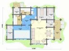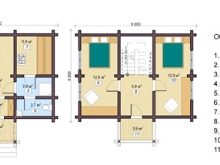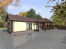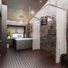 يسمح الحجم المتوسط للغرفة بإضافة صالة منفصلة وغرفة استحمام. كما ترون ، يتم استخدام المساحة بأكبر قدر ممكن من الكفاءة ، وهناك شرفة أرضية جميلة. غرف البخار والاستحمام متجاورة ، مما يجعل من الممكن استخدام خزان مياه واحد.