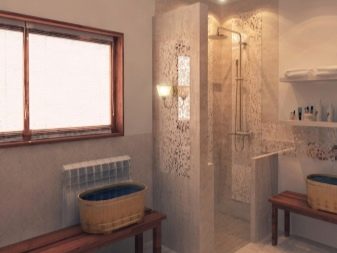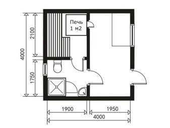 - غرفة الاستحمام – غرفة مفيدة للاستحمام ، يتم وضع كشك الاستحمام هناك ، حيث يتم تسخين المياه بواسطة الموقد ، إذا كانت غرفة الاستحمام من غرفة البخار بالطبع بها جدار مجاور. يمكنك أيضًا وضع مرحاض هناك..