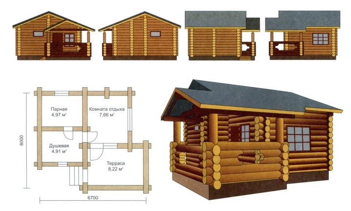 بناءً على تفضيلاتك وإمكانياتك ، يمكنك اختيار مخطط لغرف البخار ، مع مراعاة حجم موقعك. فيما يلي مخططات غرف الحمامات ذات الأحجام المختلفة.