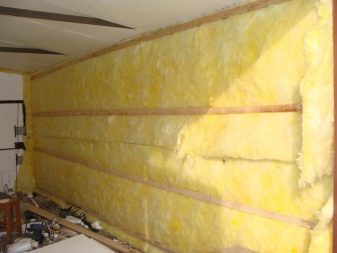 - مع الألياف الزجاجية المعدنية. الصوف الزجاجي هو أيضًا خيار جيد لعزل المرآب الداخلي. لها موصلية حرارية منخفضة ، “تتنفس” ولا تحترق. لكن هذه المواد مناسبة فقط للغرف الكبيرة إلى حد ما ، نظرًا لأنه لتثبيتها على الجدران ، فأنت بحاجة إلى إعداد هيكل إطار ، والذي سيشغل مساحة كبيرة (المسافة البادئة من كل جدار ستصبح أكثر من 10 سم). بالإضافة إلى ذلك ، الصوف الزجاجي عرضة للبلل ، مما يفقد قدرته على تخزين الحرارة..