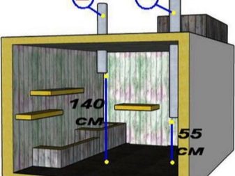 موقع مجاري الهواء مهم جدًا أيضًا. يجب أن يكون أنبوب دخول الهواء أعلى من الأرض بمقدار 30 سم ، ويجب حماية الجزء الخارجي منه بشبكة سلكية و “مظلة” لتجنب الانسداد بالحطام والحشرات والفئران. يوصى بتركيب أنبوب العادم عالياً – يجب أن يرتفع 40-60 سم فوق سقف المرآب. ومن الخارج ، يتم تغطية مجرى الهواء هذا أيضًا بـ “مظلة” ومحمي بشبكة.
