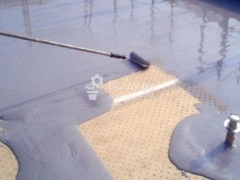 الطبقة التالية هي مواد التسقيف والعزل. بعد ذلك ، تحتاج إلى تجهيز وملء ذراع التسوية الأسمنت. كطبقة نهائية نهائية ، يمكنك استخدام ، على سبيل المثال ، أكيازول أو روبيماكس. من الأفضل بناء أقنعة على الجانبين الأمامي والأمامي للسقف..