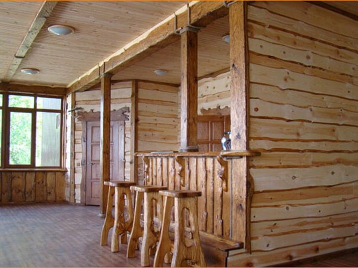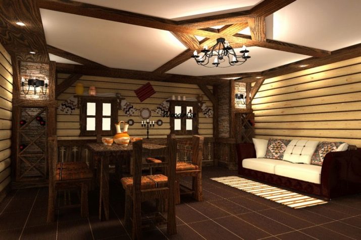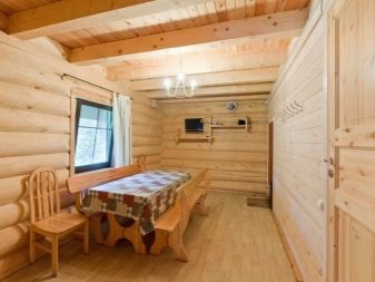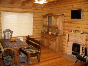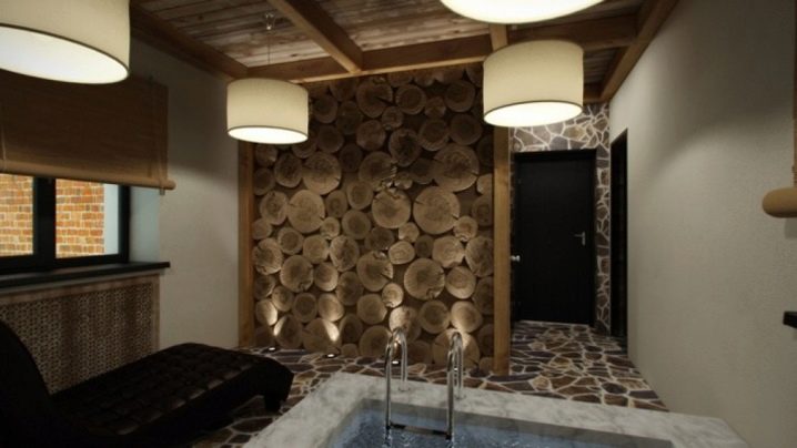 يبدو من المثير للاهتمام استخدام الألواح غير المقطوعة في تكسية الجدران ، والتي يتم تنظيفها من اللحاء وصقلها. الغرفة تأخذ ملامح وحشية.