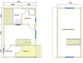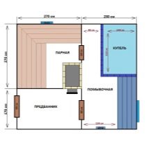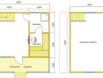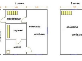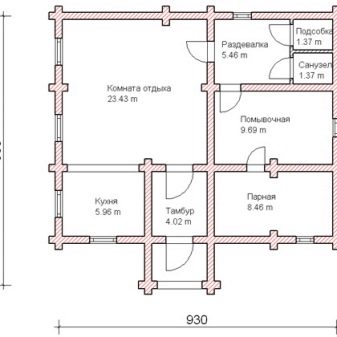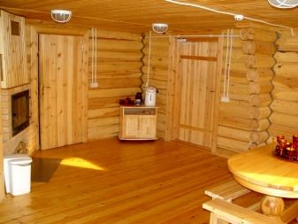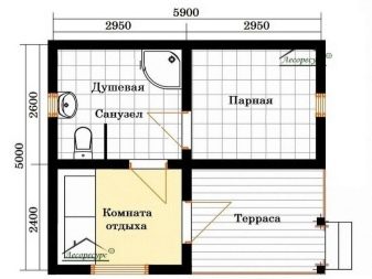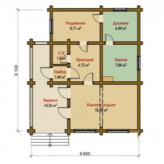 يمكن تقسيم مشاريع الحمام مع غرفة استرخاء إلى ثلاث مجموعات. المجموعة الأولى هي الحمامات التقليدية المكونة من طابق واحد. إنها مبنية من مواد بناء كبيرة ذات توصيل حراري منخفض ، ولديها مجموعة قياسية من المباني: توجد غرفة بخار ، وغرفة للاستحمام ، وغرفة استرخاء ، وغرفة لارتداء الملابس ، وفي بعض الأحيان شرفة..