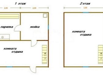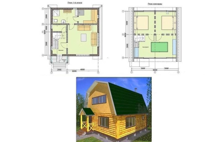 بالنسبة لعائلة مكونة من 4-5 أشخاص والعديد من الضيوف ، فإن الحجم الأمثل هو حمام 6 × 6 أمتار مع علية. يوجد في الطابق الأرضي قاعة مدخل أو غرفة بخار أو غرفة استحمام مع مرحاض أو غرفة ترفيه أو غرفة معيشة. يمكن استكمال غرفة الاستراحة بمطبخ ، والطابق الثاني مخصص للترفيه وأماكن إضافية لاستيعاب الضيوف أو أفراد الأسرة. يمكن استخدام منطقة مدخل الطابق الثاني بمساحة 18 متر كاستوديو أو غرفة بلياردو. يوجد خلفها غرفتا نوم متماثلتان أو غرفتان للأطفال بمساحة 9 أمتار مربعة. أمتار.