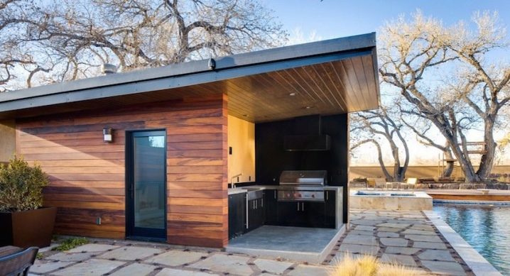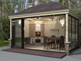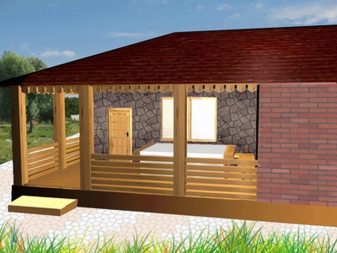 يعتمد اختيار التصميم على موسمية استخدام الحمام. للاستخدام على مدار العام ، تكون المجموعة الأولى والثانية من المشاريع مناسبة. في الصيف ، يكفي أن يكون لديك غرفة استراحة تحت مظلة بزجاج مرن مصنوع من الفيلم أو البولي كربونات لخيار الميزانية..