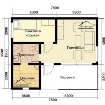 تقع غرفة الترفيه في الطابق الأرضي بجوار غرفة البخار والحمام وتجمع بين وظائف غرفة الملابس. هذا هو الخيار الأكثر ملاءمة ، والذي يسمح لك بالحفاظ على درجة حرارة مثالية في جميع الغرف ، حيث يقوم الموقد بتسخين جميع الغرف المجاورة بالتساوي مع إمداد البخار إلى قسم الساونا.