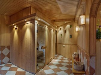 يعتبر خشب الصنوبر ميسور التكلفة ، وله نمط حبيبي جميل معقد وهو مادة شائعة للاستحمام في البلاد. عيبه هو الهيكل المسامي للخشب ، والذي يغير بشكل كبير الأداء من التدفئة والرطوبة العالية ، لذلك ، في غرفة البخار والدش ، يجب تغليف الصنوبر بقماش من الخشب الصلب ، و بالنسبة لغرفة الاسترخاء ، سيكون الصنوبر برائحته اللطيفة ومظهره الجمالي هو الحل الأفضل.