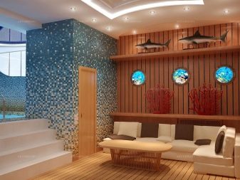 يتم تحديد تصميم غرفة الاستراحة من خلال أسلوب الزخرفة المختار. لإنهاء الحمام ، من الأفضل اختيار مواد طبيعية مقاومة للرطوبة. من الملائم الحفاظ على نظافة جميع الغرف إذا لم تكن المساحة مزدحمة بأشياء غير ضرورية وكانت الأسطح سهلة التنظيف. يتم تحديد تصميم غرفة الاستراحة من خلال أسلوب التصميم المختار..