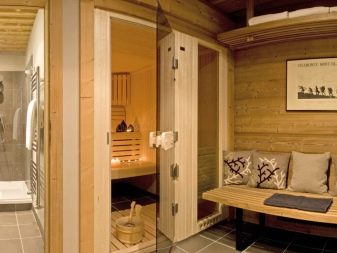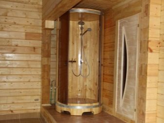 لا يمكن أن تفتخر حمامات البخار الصغيرة بمجموعة كبيرة من المباني ، لذلك غالبًا ما يوجد دش في غرفة الاسترخاء. في زخرفة المباني باستخدام حل التخطيط هذا ، من الضروري مراعاة زيادة الرطوبة واختيار المواد المناسبة: البلاط ، الألواح البلاستيكية ، الحجر الطبيعي أو الاصطناعي.
