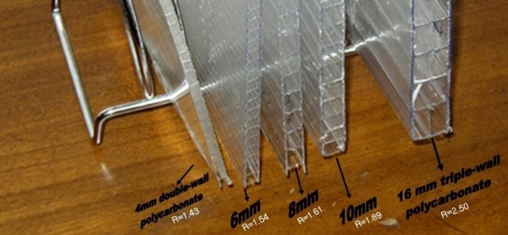 لبناء البيوت الزجاجية ، يتم استخدام صفائح من المواد بسمك 4 و 6 مم. يتم استخدام النوع الثاني من الألواح في كثير من الأحيان ، وله كثافة أعلى. أظهرت الممارسة: كلما كانت الورقة أرق ، كلما تطلبت هياكل داعمة أكثر حتى لا يحدث تشوه أثناء التشغيل. أي أن إنشاء سقف قد يتطلب تكاليف أكبر ، وقد يتم التوفير في سمك المادة بشكل جانبي.