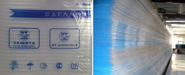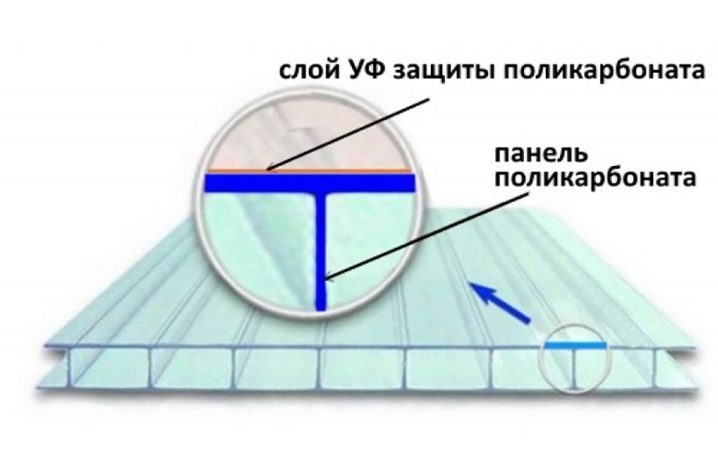 يتم إضافة الإضافات الخاصة التي تحمي من الأشعة فوق البنفسجية إلى المواد الخام في مرحلة الإنتاج. هذه الطريقة فعالة لأن الأشعة فوق البنفسجية تخترق بعمق ألواح البولي كربونات. عمر خدمة هذه المواد قصير نسبيًا ، لا يزيد عن عشر سنوات. يوجد فيلم خاص يعكس بشكل فعال الأشعة فوق البنفسجية ، وفي هذه الحالة تزداد مدة خدمة المادة بنسبة 50-60٪. هناك طريقة أخرى للحماية عند وجود طبقتين من الفيلم. في هذه الحالة ، تكون المادة محمية تمامًا من الإشعاع الضار ، ويجب أن تكون مدة خدمتها ربع قرن على الأقل أو أكثر..