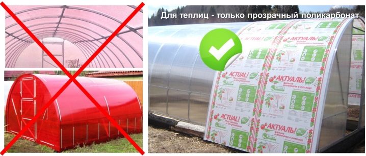تأتي الصفيحة البلاستيكية الحرارية في مجموعة متنوعة من الألوان. البولي كربونات أخف بأربعة عشر مرة من الزجاج ، وشفافية الألواح ذات الألوان المختلفة تصل إلى 50٪ ، أما بالنسبة للألواح الشفافة ، فإن هذا المعامل يزيد إلى 85٪. لا يمكن تلوين الأوراق فقط ، ولكن أيضًا بنسيج خاص أو ملون. في بعض الأحيان تكون هذه المواد ضرورية وتفي بالاحتياجات الملحة ، ولكن في البيوت الزجاجية ، غالبًا ما توجد ألواح البولي كربونات الشفافة الكلاسيكية..