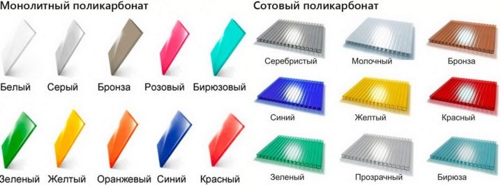 تأتي الصفيحة البلاستيكية الحرارية في مجموعة متنوعة من الألوان. البولي كربونات أخف بأربعة عشر مرة من الزجاج ، وشفافية الألواح ذات الألوان المختلفة تصل إلى 50٪ ، أما بالنسبة للألواح الشفافة ، فإن هذا المعامل يزيد إلى 85٪. لا يمكن تلوين الأوراق فقط ، ولكن أيضًا بنسيج خاص أو ملون. في بعض الأحيان تكون هذه المواد ضرورية وتفي بالاحتياجات الملحة ، ولكن في البيوت الزجاجية ، غالبًا ما توجد ألواح البولي كربونات الشفافة الكلاسيكية..