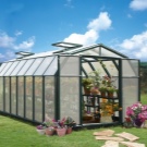 يمكن أن يكون للبيوت المحمية سقف واحد أو الجملون. يختلف منحدر السقف اعتمادًا على التصميم ، وغالبًا ما يمكنك العثور على أسقف بميل من 17 درجة إلى 33 درجة أو حتى 47 درجة. كلما كان السقف أكثر انحدارًا ، قل تراكم الثلوج عليه ، مما يؤدي بدوره إلى إطالة العمر الافتراضي. عادة ما توجد أسقف الحظائر في المرافق التي تكون ملحقة بالمنزل الرئيسي.