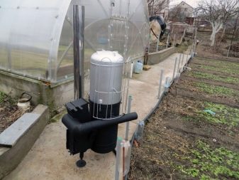 نادرًا ما يتم استخدام الطريقة الأولى ، نظرًا لأن معظم المرائب غير متصلة بشبكات الغاز.. غالبًا ما توجد أفران تعمل من الغاز المسال في أسطوانة.. وهي متصلة بالوحدة باستخدام خرطوم خاص. أثناء تشغيل الموقد ، يتم إخراج الغاز المعالج إلى الشارع عبر المدخنة. هذه الهياكل تعمل بدون كهرباء..