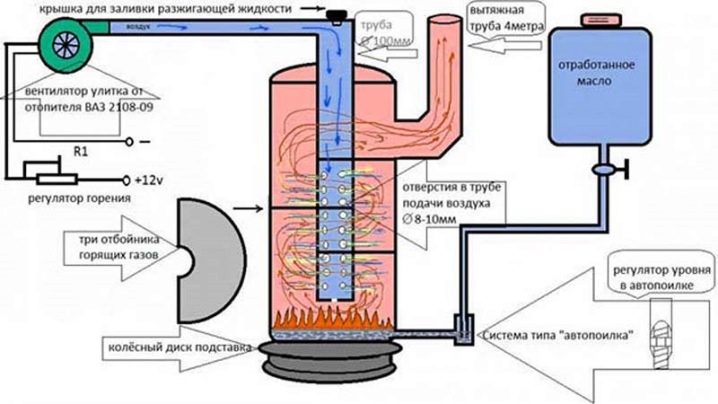 يفضل العديد من المستهلكين هذا النموذج المعين ، لأنهم لا يحتاجون إلى شراء وقود باهظ الثمن له. كل ما تحتاجه هذه الوحدة هو زيت المحرك المعاد تدويره ، كما يجوز استخدام زيت الوقود أو الكيروسين أو زيت التدفئة أو زيت الديزل.. يمكنك صنع مثل هذا النموذج بيديك..