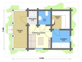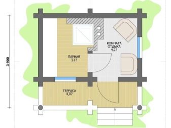 يوفر بناء الساونا في منطقة الضواحي فرصًا كبيرة للإبداع. من الممكن تمامًا بناء حمام صغير الحجم اقتصاديًا بيديك. على مساحة 10-12 متر مربع. متر يناسب كل ما تحتاجه, سيسمح لك الحجم الصغير بالتوفير في التدفئة ، وتتسع غرفة الترفيه الصغيرة في الصيف بسبب الشرفة الأرضية. أبسط مشروع للحمام مع شرفة يشمل غرفة بخار ودش وغرفة استرخاء أو غرفة تغيير الملابس وتراس مغطى.