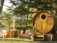 تعتبر الحمامات على شكل برميل خيارًا اقتصاديًا وملائمًا لبناء كوخ صيفي. هذا مثالي للحمام الفنلندي. إنها سهلة التركيب ، وتحتوي على المجموعة اللازمة من المباني ، وتذوب بسرعة ، ومصنوعة من مواد طبيعية ، وتشغل مساحة صغيرة على الموقع.