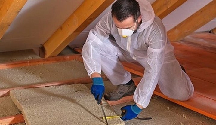 - عيب آخر للصوف المعدني هو ارتفاع مستوى الغبار. يحتوي هذا العزل على ألياف هشة للغاية ، وشظاياها حادة ورقيقة. إذا لامست الجلد ، فإنها تسبب حكة شديدة وتهيجًا. يمكنك العمل مع هذا السخان فقط في ملابس ونظارات واقية خاصة..