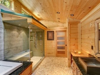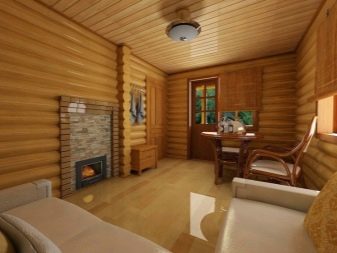 لتزيين الجدران الداخلية ، حسب المنطقة يمكنك استخدام البطانة ، والأخشاب ، وجذوع الأشجار المدورة ، والأحجار ، والطوب ، وبلاط السيراميك, مصممة للحمامات. وللأرضيات الداخلية – عوارض خشبية.