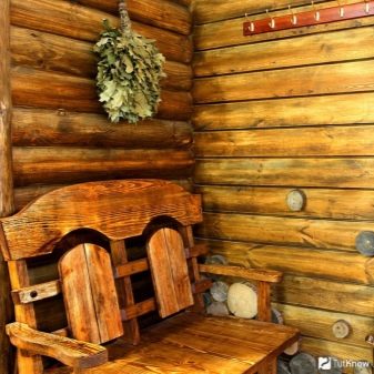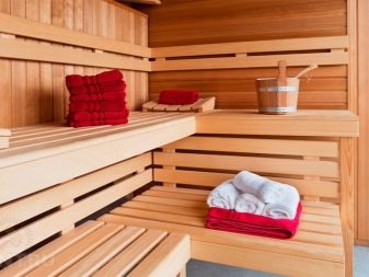 لتوفير مساحة ، في هذه الحالة ، يمكن وضع مقعد وخطافات للملابس في غرفة خلع الملابس الصغيرة. ومع ذلك ، يُنصح بتخصيص غرف منفصلة لغرفة البخار وغرفة الغسيل ، لأنه لا يمكن للجميع تحمل درجات الحرارة العالية مع الرطوبة العالية..