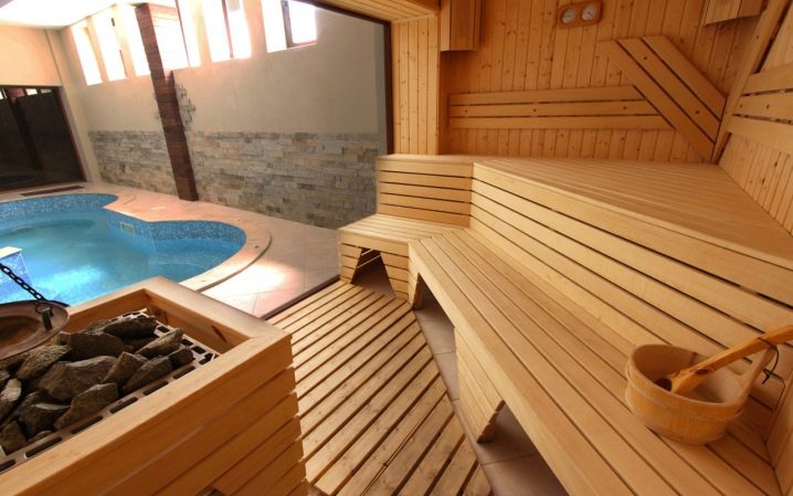 يمكن اعتبار المشروع الأكثر نجاحًا إذا كانت الغرفة مع المسبح عبارة عن ممر وله ثلاثة أبواب في وقت واحد ، مما يؤدي إلى غرفة الاستجمام وغرفة البخار وغرفة الغسيل.