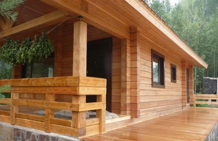 - في الحمام المكون من طابق واحد ، لا يوجد دائمًا مكان لغرفة استرخاء واسعة ، ولكن في هذه الحالة ، يمكنك ترتيب شرفة أو شرفة أرضية مغطاة للاسترخاء بعد غرفة البخار. سيتم تقدير هذا الخيار من قبل عشاق الترفيه الكامل والمريح في الهواء الطلق..