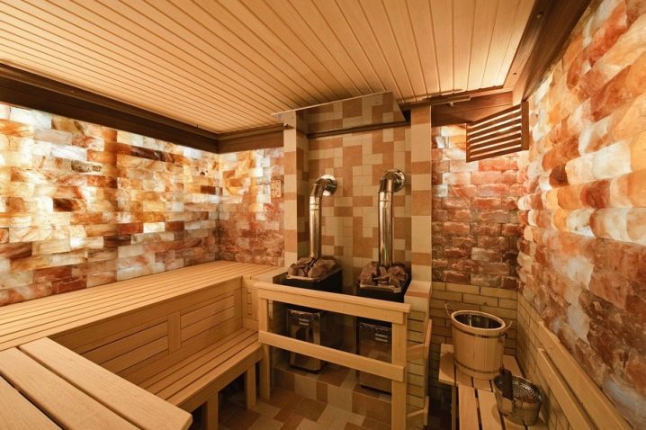 - على أحد الجدران بالقرب من الموقد ، يمكنك تثبيت لوح ملح ، والذي ، مثل مصباح الملح ، عند تسخينه ، سيملأ الغرفة بالعناصر الدقيقة المفيدة..