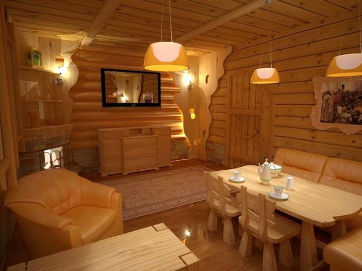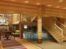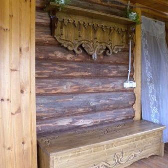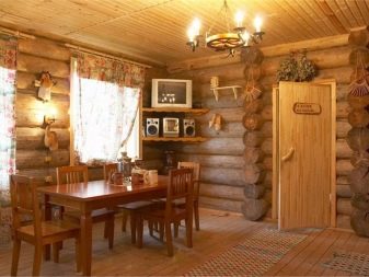لتزيين الجدران الداخلية ، حسب المنطقة يمكنك استخدام البطانة ، والأخشاب ، وجذوع الأشجار المدورة ، والأحجار ، والطوب ، وبلاط السيراميك, مصممة للحمامات. وللأرضيات الداخلية – عوارض خشبية.