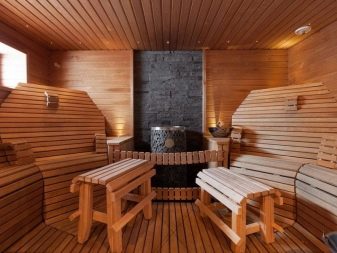 يمكن تصميم غرفة البخار لمدة 2-3 أشخاص, التي يمكن أن تجلس بشكل مريح على مقاعد خشبية.