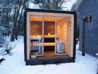 لكن بالنسبة للكثيرين ، لا يمكن أن يكون بناء حمام رأس المال في الموقع ميسور التكلفة. وفي هذا الصدد ، هناك بديل رائع – حمام متنقل من البار. إنه هيكل متحرك على شكل حاوية على عجلات. لا يختلف الإعداد الداخلي كثيرًا عن الحمام التقليدي. وإلى جانب ذلك ، يمكن استخدام الساونا القابلة للنقل ليس فقط في منطقة الضواحي ، ولكن أيضًا في أي مكان: في رحلة استكشافية أو في موقع بناء أو في رحلة..