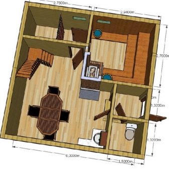 في بعض المناطق ، ليس من الممكن دائمًا تخصيص مساحة كبيرة للحمام ، وفي مثل هذه الحالات ، يمكنك اللجوء إلى حل غير قياسي. يمكن اعتبار خيار غير عادي مشروع حمام الزاوية. ميزتها الرئيسية هي أن غرفة الاستراحة وغرفة البخار تقعان فوق زاوية 90 درجة بالنسبة لبعضهما البعض. وبالتالي ، يقع الموقد في الجزء المركزي ويمكنه تسخين جميع الغرف في وقت واحد ، وهو أمر ضروري بشكل خاص في فصل الشتاء..