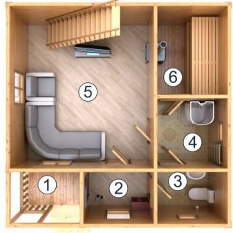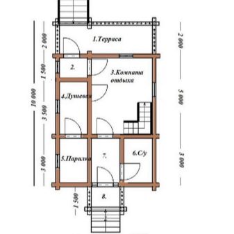 - غرفة خلع الملابس أو الدهليز – المكان الذي يمكنك ترك الأشياء فيه قبل الذهاب إلى الحمام. هنا أيضًا يمكنك تخزين الحطب لتسخين الموقد والمكانس.