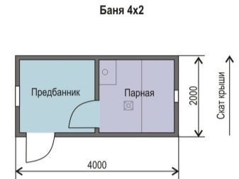 إذا كانت مساحة الموقع لا تسمح بذلك ، فيمكنك بناء حمام صغير 2 × 2 أو 2 × 4 ، ولكن في هذه الحالة ، سيشمل التصميم الحد الأدنى الضروري فقط – غرفة بخار وغرفة لارتداء الملابس.