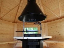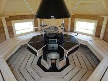 - ميزات الترتيب. اعتمادًا على ما إذا كانت الغرفة ستجهز بموقد شواء أم شواء أم موقد ، يتم حساب المنطقة. في بعض الحالات ، يتم وضع الموقد ببساطة في وسط المبنى..