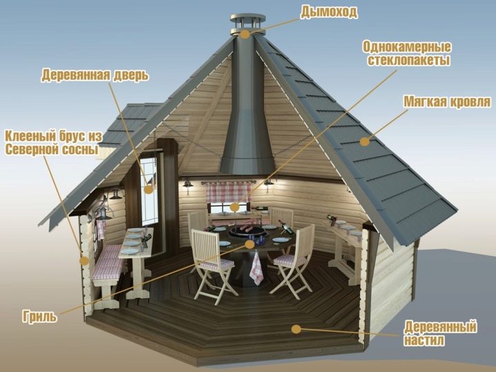 منزل الشواء هو فنلندا. بفضل تصميمه المريح ومظهره الأنيق ، نجح في ترسيخ مكانته في جميع أنحاء العالم ، ويحلم معظم سكان الصيف بمثل هذا المبنى على موقعهم. قبل تثبيته ، عليك التفكير بعناية في تخطيط وتصميم الهيكل. لهذا ، يتم وضع المشروع أولاً ، ويتم تحديد نوع الشجرة المستقبلية. غالبًا ما يتم صنع الهيكل على شكل ستة أو سبعة أو مثمن. الأكثر شعبية في المشاريع هو الشكل السداسي., حيث يتم تنفيذ بنائه بسرعة وغير مكلفة.